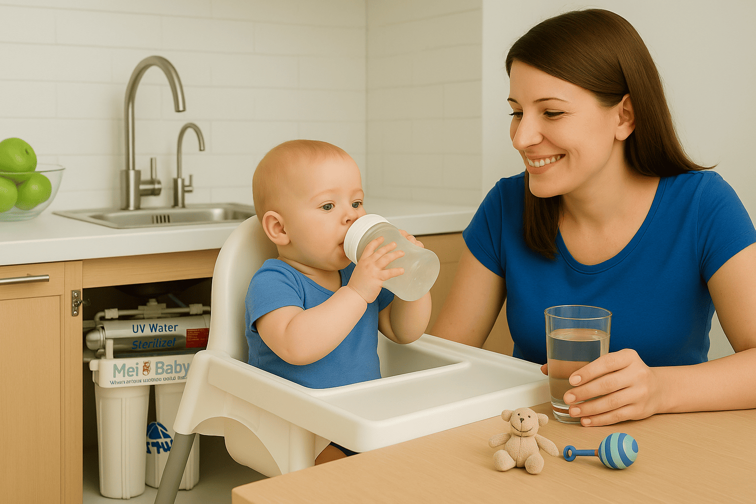 תינוקות רגישים פי כמה לזיהומים ומזהמים במים. מטהר Mei Baby  עם מחזור UV מוגדל של 10 דקות מבטיח שכל טיפה בטוחה לחלוטין – גם מים ששוהים בתוך המערכת.